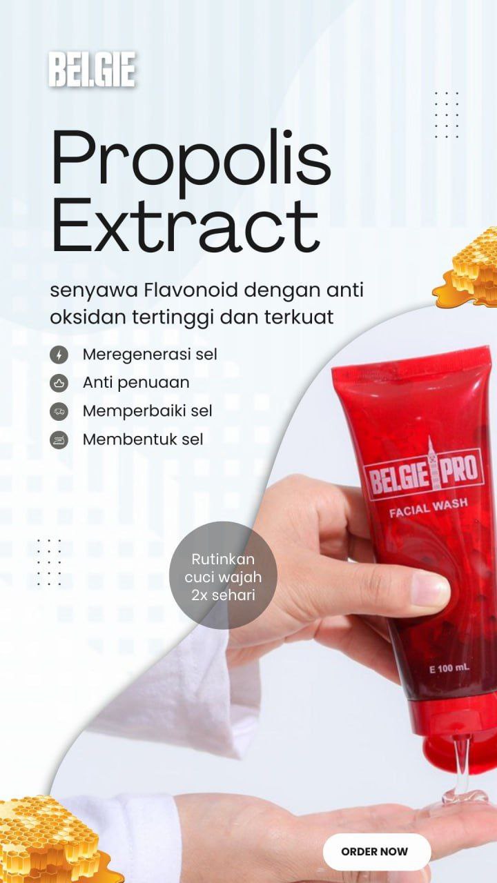 Produk Belgie Pro mengandung Ekstrak PROPOLIS yan membuatnya lebih powerful dalam melindungi dan menyehatkan sel kulit