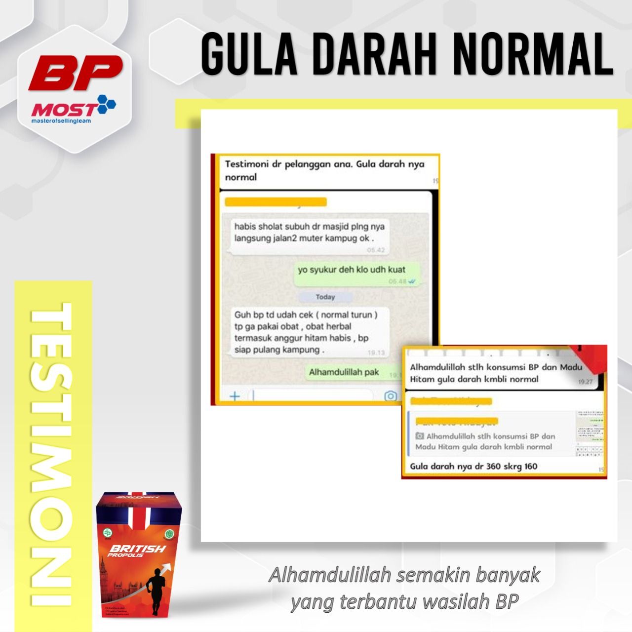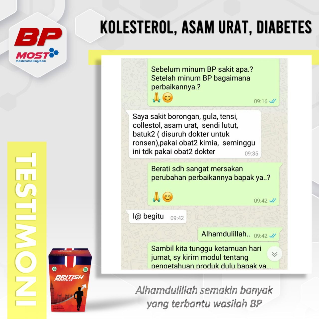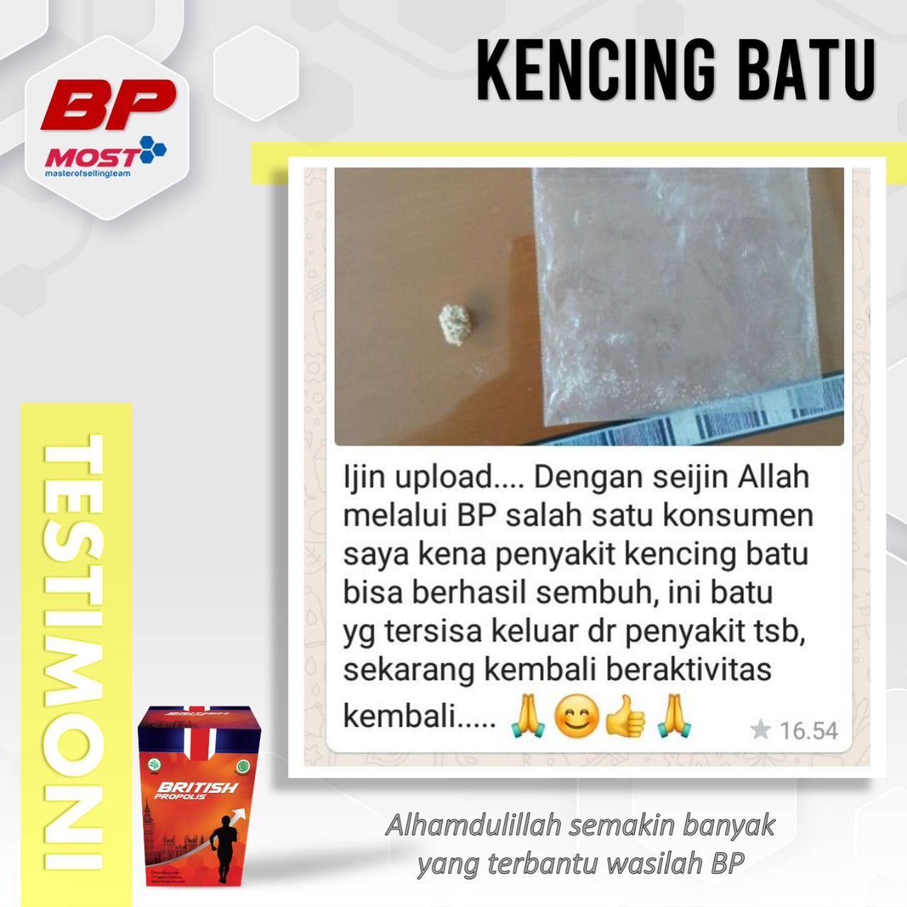 British Propolis direkomendasikan oleh para Ustaz, para Guru, dan banyak Public Figure. Biidznillah terbukti bisa membantu kesembuhan dan meningkatkan kualitas hidup banyak orang.